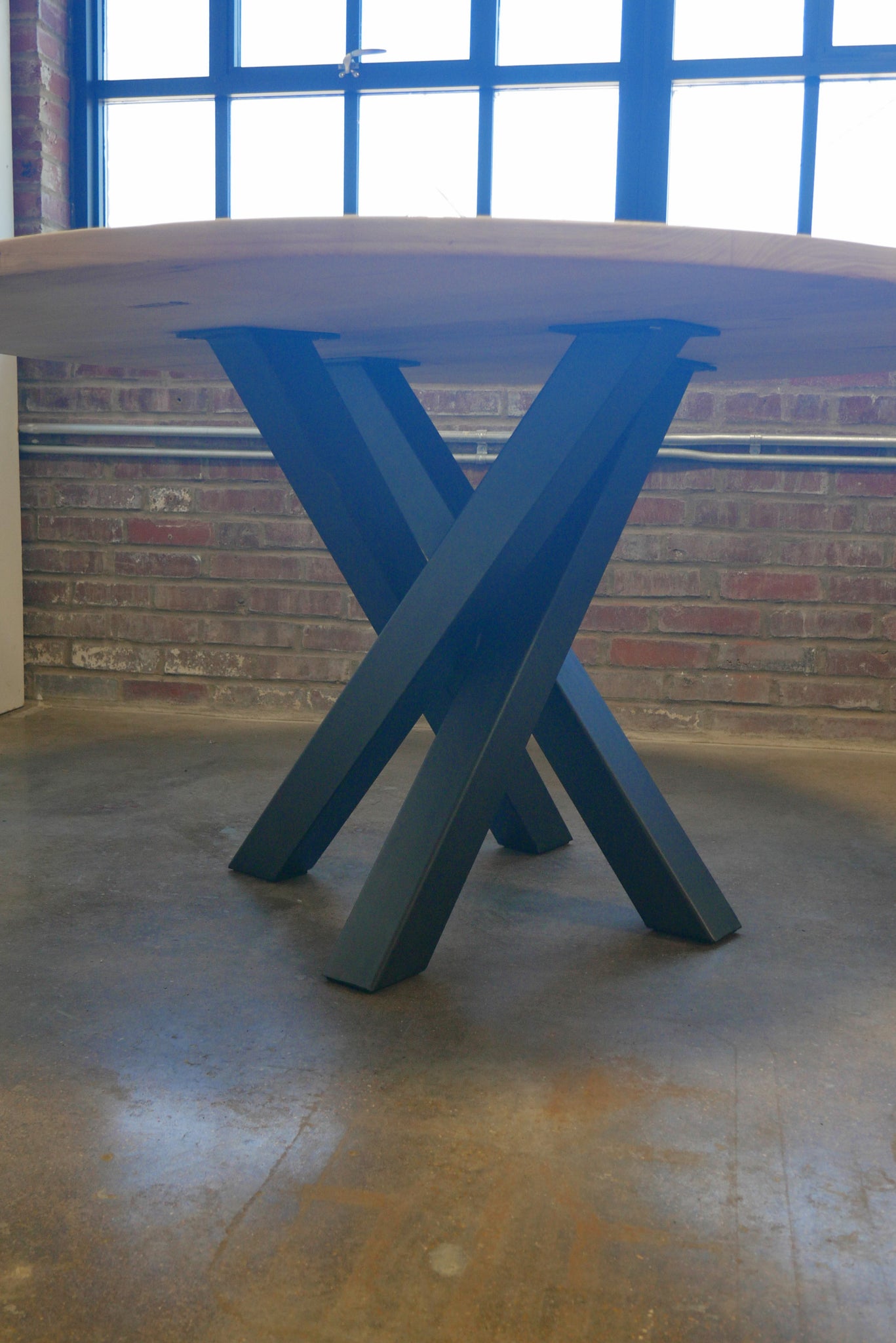 This 4.5’ round dining table is made for some people who love hiking and camping; I am calling this new style of legs I came up with a “Campfire” table base.